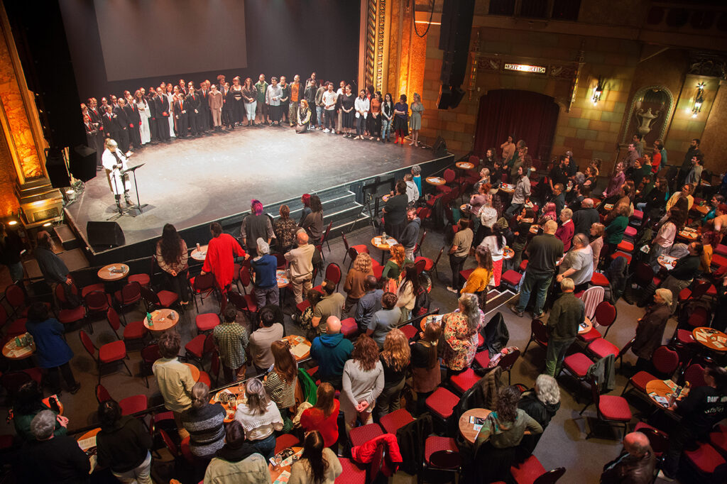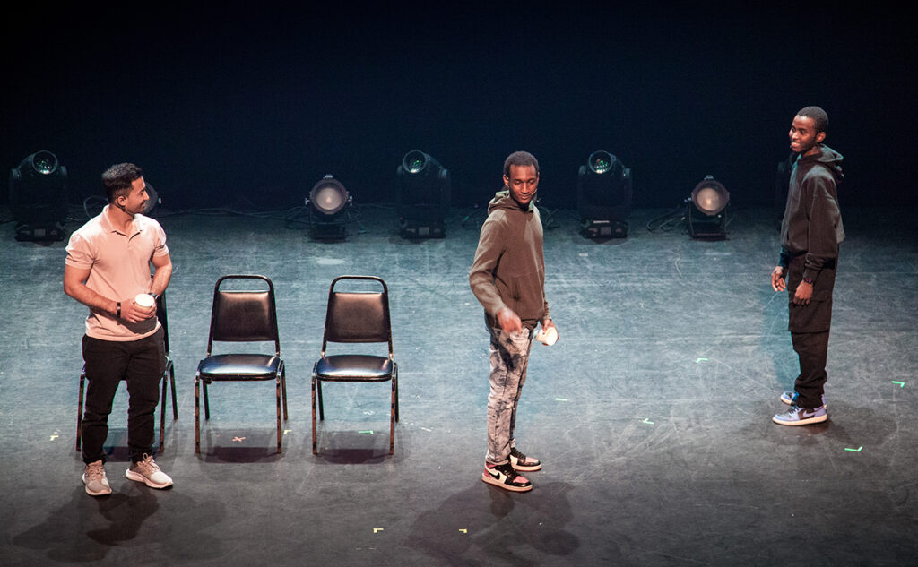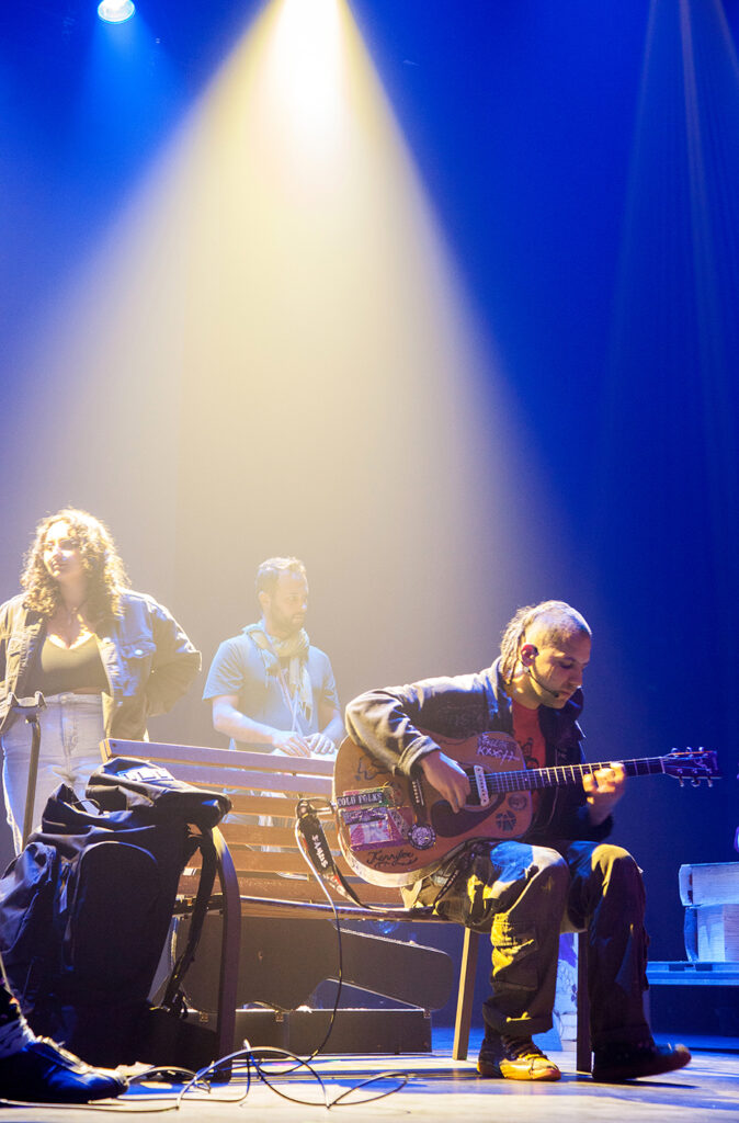 Près de 250 personnes ont assisté à la 4e édition du spectacle, qui a eu lieu le 20 mai 2025 au Théâtre Granada. Chaque prestation nous a transporté à travers une gamme d’émotions, avec beaucoup de sincérité et d’audace. Le spectacle a été animé par Angèle Séguin, fondatrice et ex-directrice artistique du Théâtre des Petites Lanternes. Les groupes de création avaient chacun été rassemblés par un organisme partenaire, soit le Studio A2, le Service d’aide aux Néo-Canadiens (SANC), Le Tremplin 16-30 ainsi que l’Observatoire sur la santé mentale étudiante en enseignement supérieur et le Centre RBC d’expertise universitaire en santé mentale. Avec l’accompagnement d’un ou une artiste professionnel·le, les participants et participantes ont créé des performances autour des thématiques suivantes : l’image de soi en rapport avec le regard de l’autre, les parcours migratoires, la marginalité et, finalement, la santé mentale étudiante et la culture de performance. Des chercheurs et chercheuses de l’Université de Sherbrooke ont aussi été mis à contribution pour alimenter scientifiquement les réflexions des jeunes à travers leur processus créatif.
